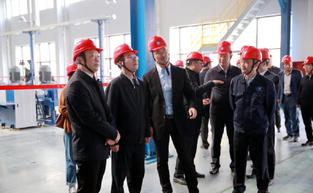 11月18日,泰州市委常委、常務副市長劉浩帶領發改委、工信局、自然資源規劃局、商務局主要負責人赴我司調研興達年產35萬噸高性能子午線鋼簾線項目建設情況。泰州市政府副秘書長、辦公室主任劉江明,興化市委常委、常務副市長常冬海,市委常委、戴南鎮黨委書記夏愛東,興化市政府辦分管負責人、發改委、